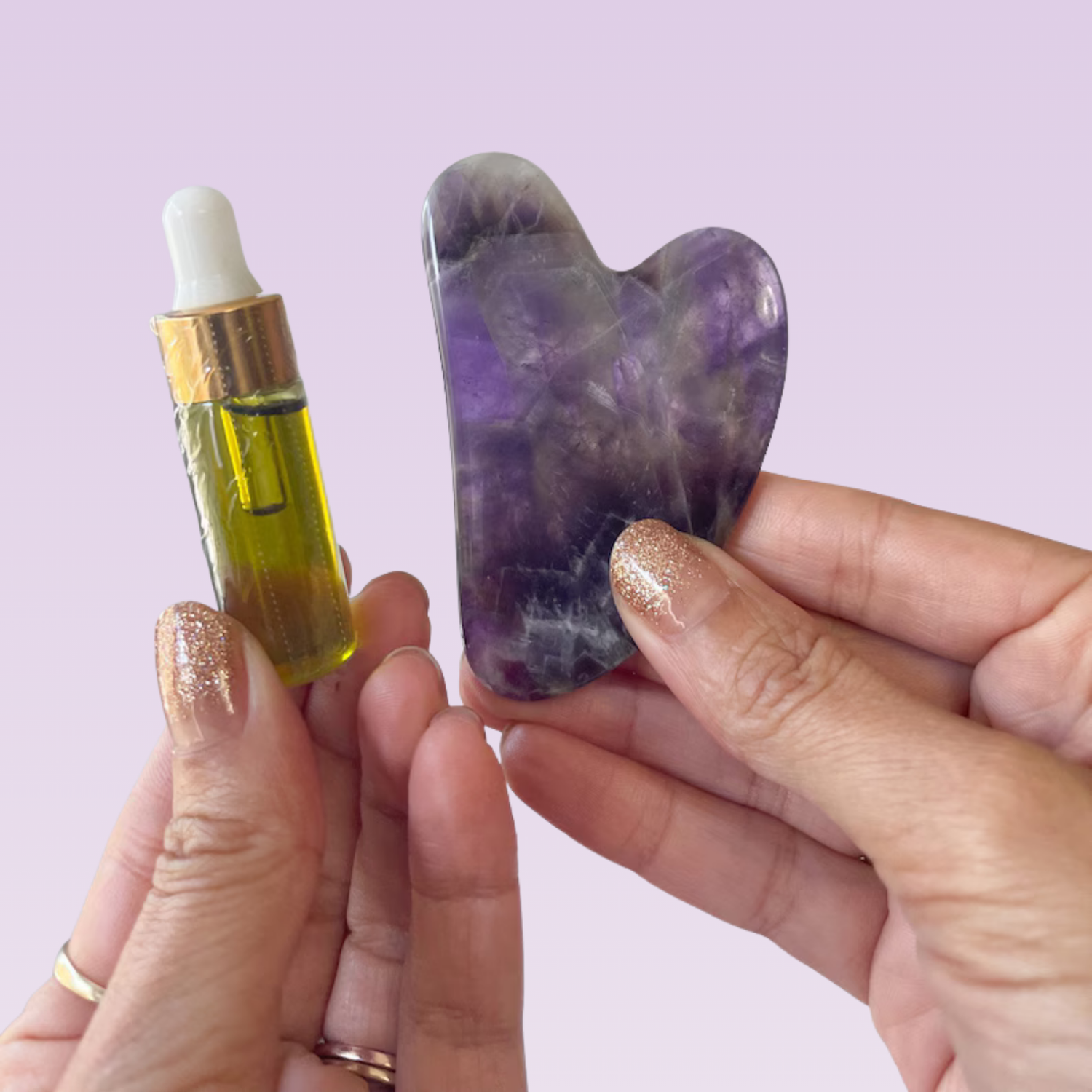 You'll need a facial oil, serum, or moisturizer to create a smooth gliding surface and prevent dragging. Your existing skincare products work perfectly - the Gua Sha actually enhances their absorption and effectiveness. Avoid using the tool on dry skin as this can cause irritation and won't provide the therapeutic benefits you're seeking.